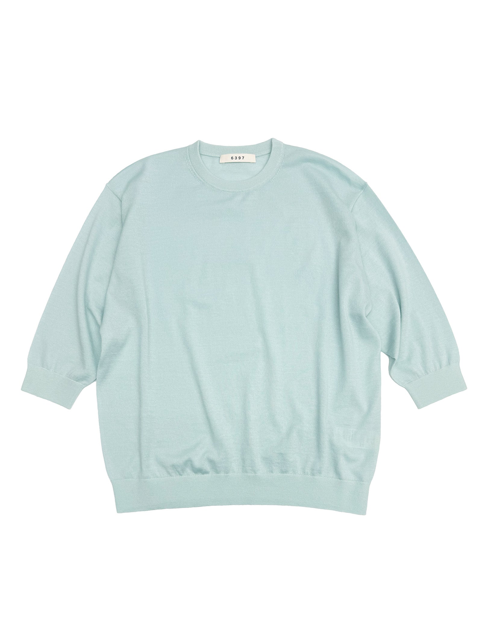 The Elbow Crew is made in a cashmere and mercerized wool blend yarn. It has a relaxed body with a high crewneck and elbow length sleeves. Yoke detail on the back. Rib trims at bottom hem, sleeve opening and neck. Fits true to size.