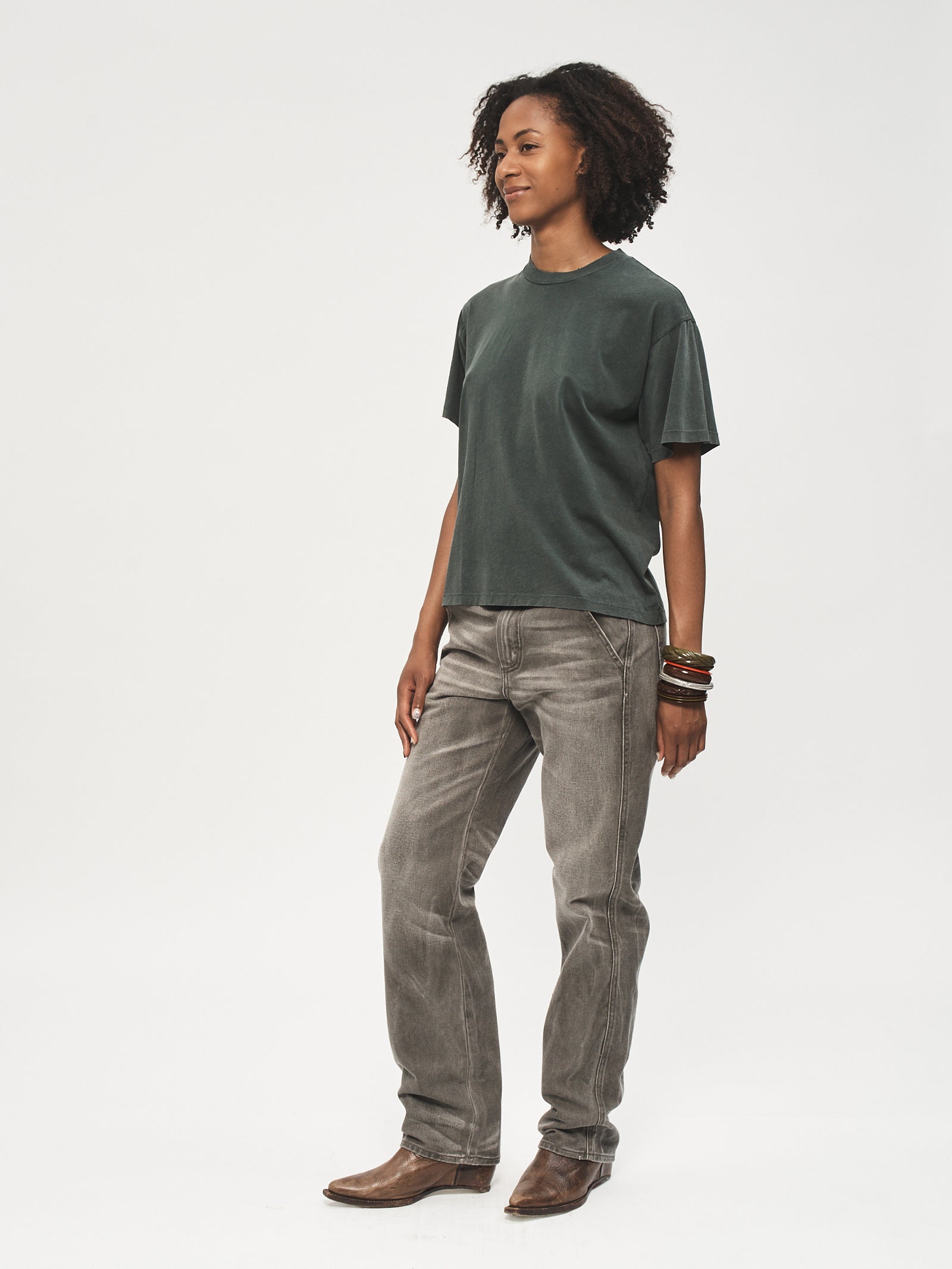 The Boy T is a boxy fitting, short sleeve t-shirt cut in a tissue-weight, super soft cotton. Crewneck with vintage wash treatment and a washed, faded color.
