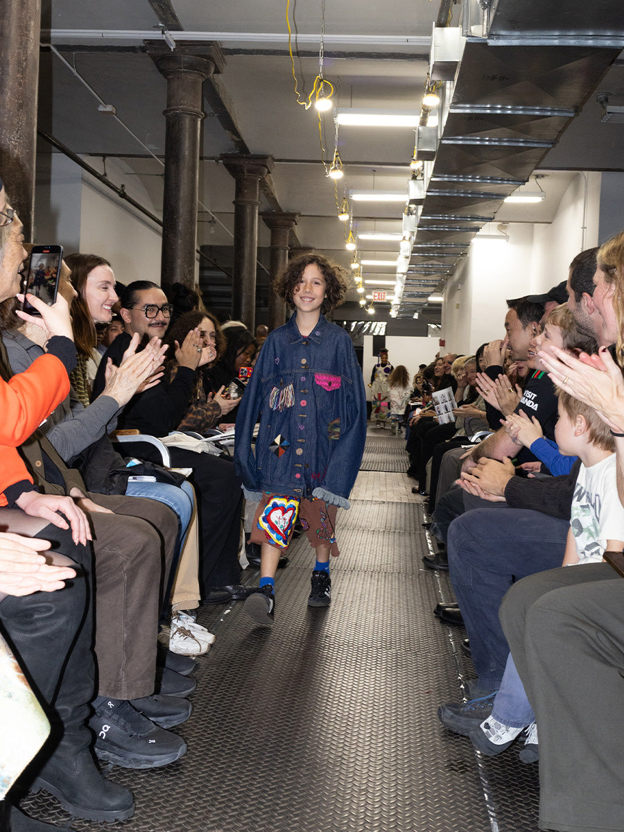 Dark Rinse Denim Jacket with artwork by Creative Growth Artist Emily Witkin. Relaxed fit. Button front closure. 100% Cotton.