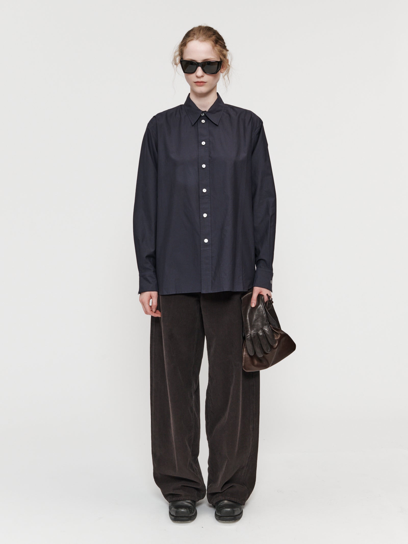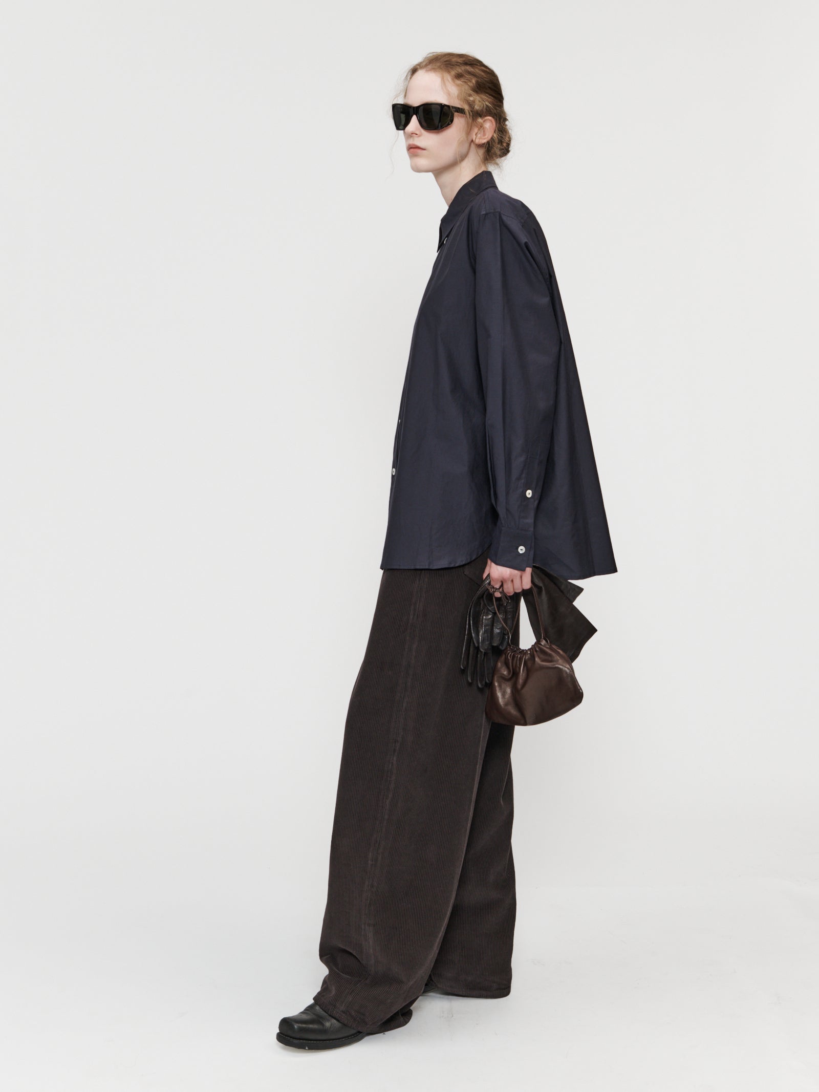 The Frank Shirt has a relaxed body with a pointed short collar and full button closure. Made of a Cotton Silk Voile, this shirt has a lightweight hand-feel that will drape beautifully on body. Available in Dust Blue and Deep Purple.