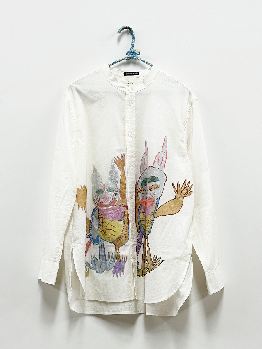 Collarless cotton buttondown shirt with artwork by Creative Growth Artist Joe Spears. 100% Cotton.
