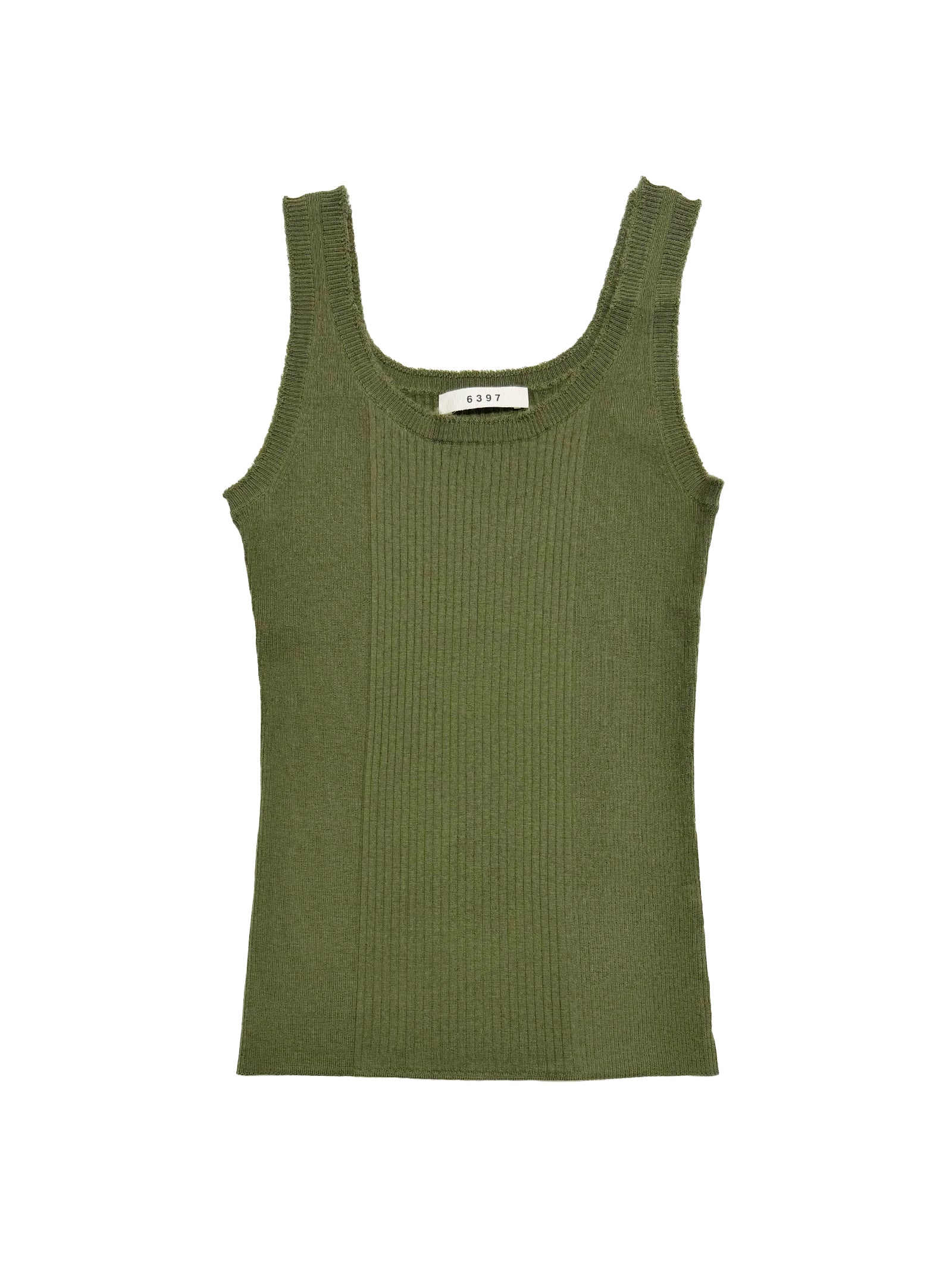 The Variegated Rib Tank sweater is knit in a lightweight cozy wool cashmere blend yarn. Variegated ribbed details throughout body. Scoop neck and back, this tank runs true to size and pairs perfectly with the Wide Rib Cardigan.
