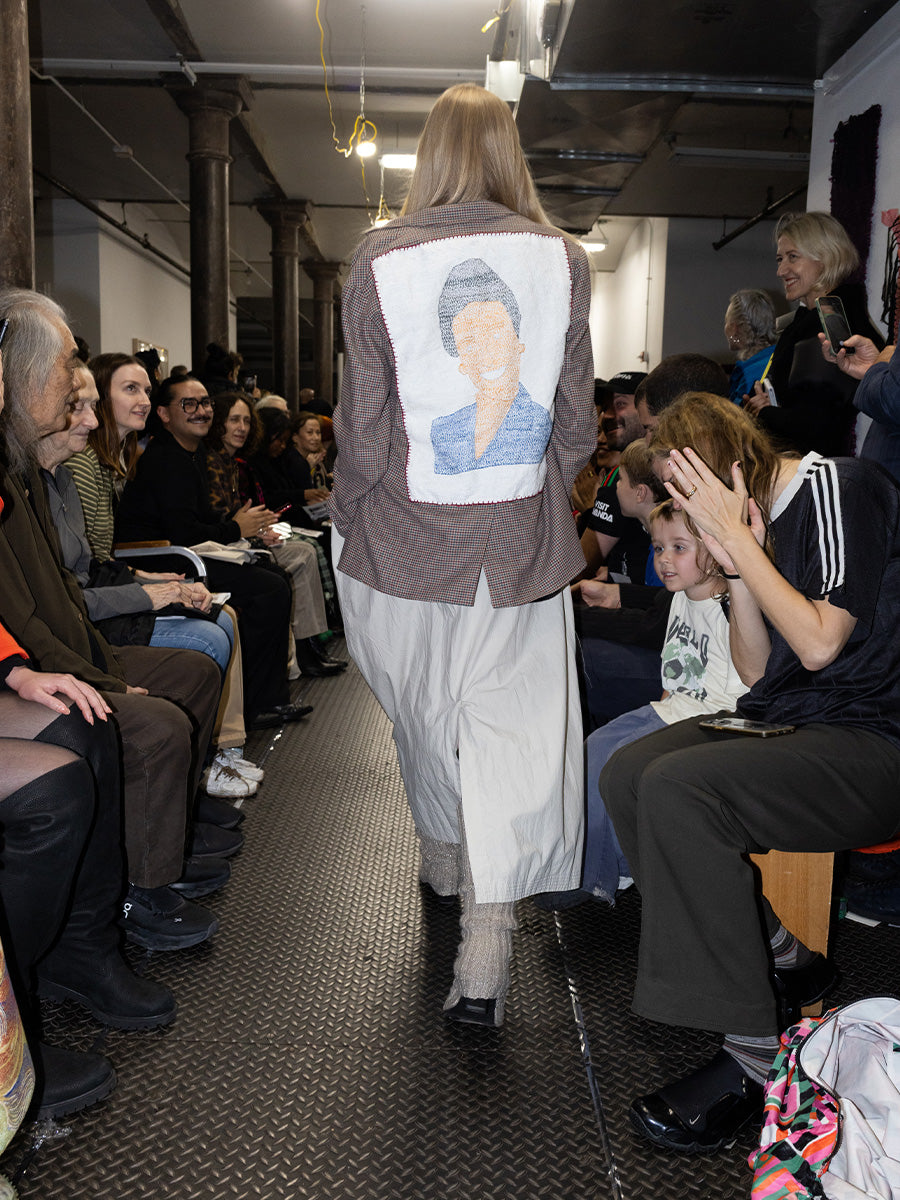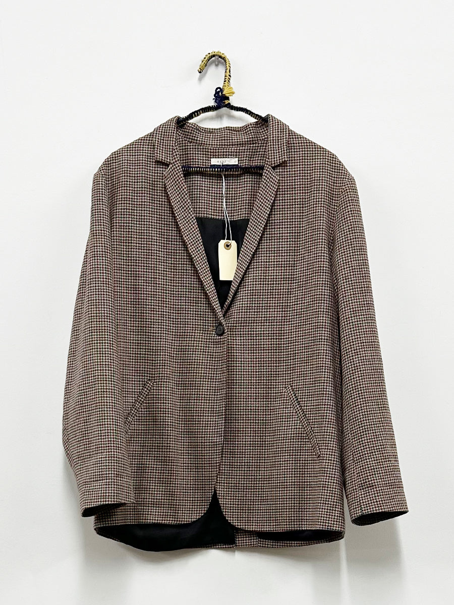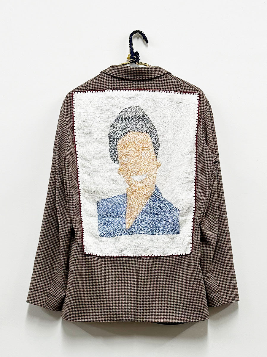 Checked blazer with artwork by Creative Growth Artist Zina Hall.
